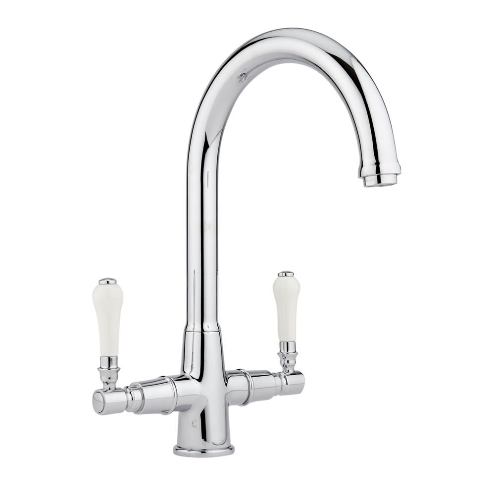Die Armatur besteht aus massivem Messing und gewährleistet somit jahrelange Haltbarkeit, während das zeitlose Design und das strapazierbare Finish in Chrom jedem Farbschema schmeicheln. Die weißen Keramikhebel bieten dabei eine mühelose Regulierung des Wassers und der praktische Hahn ist schwenkbar.