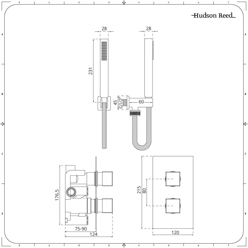 1-Weg Unterputzarmatur Eckig inkl. quadratischer Handbrause & Duschschlauch - Kubix