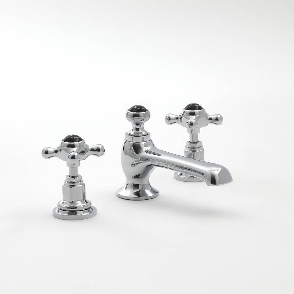 3-Loch Waschtischarmatur mit Zugstangen-Ablaufgarnitur, Kreuzgriffe - Chrom und Schwarz - Elizabeth