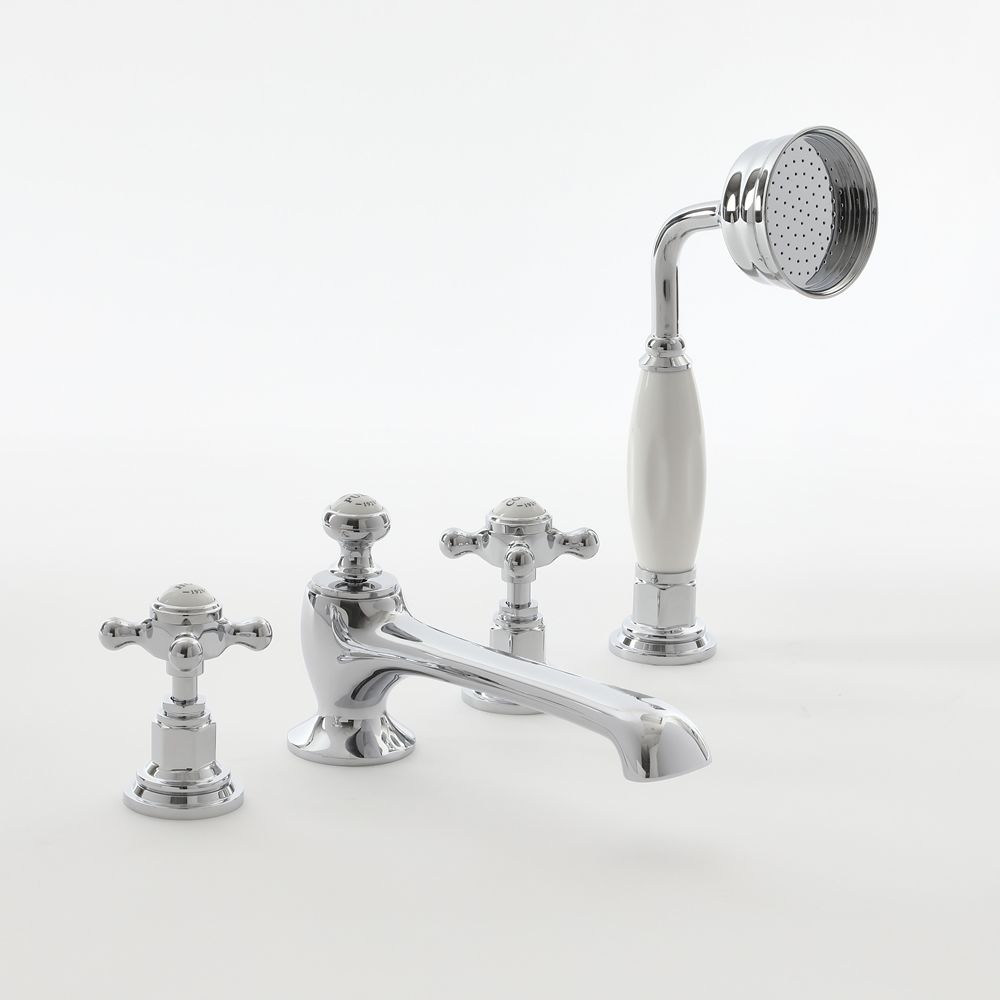 4-Loch Badewannenarmatur - inkl. ausziehbarer Handbrause - Chrom/Weiß - Elizabeth