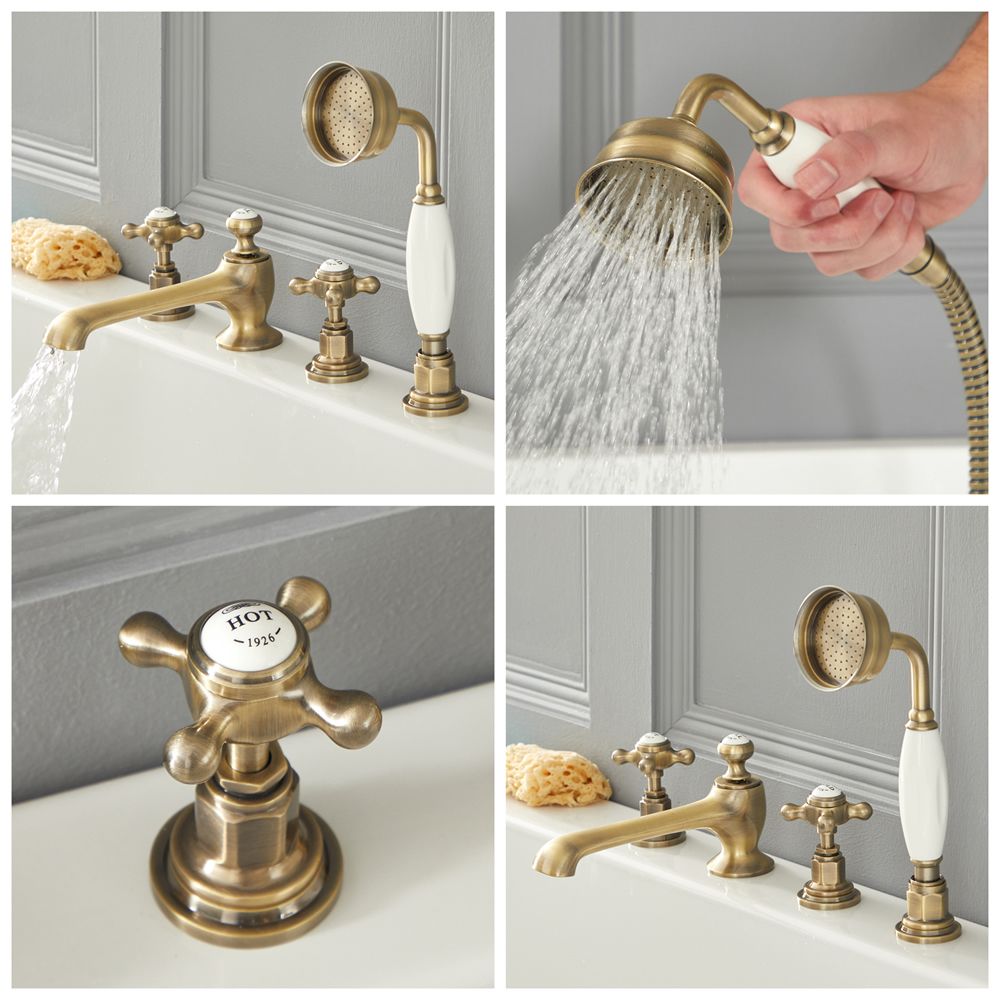 Genießen Sie ein luxuriöses Badeerlebnis und verleihen Sie Ihrem Bad mit der Elizabeth 4-Loch Wannenarmatur einen zauberhaften Vintage-Look.