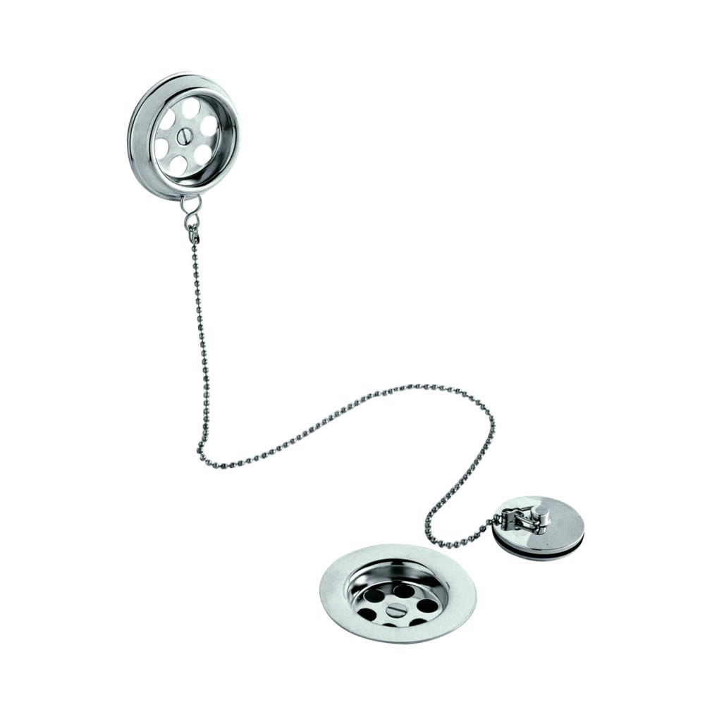 Ablauf Garnitur mit Überlauf und Ausgussstöpsel. Körper aus solidem Messing, Oberfläche Chrom.