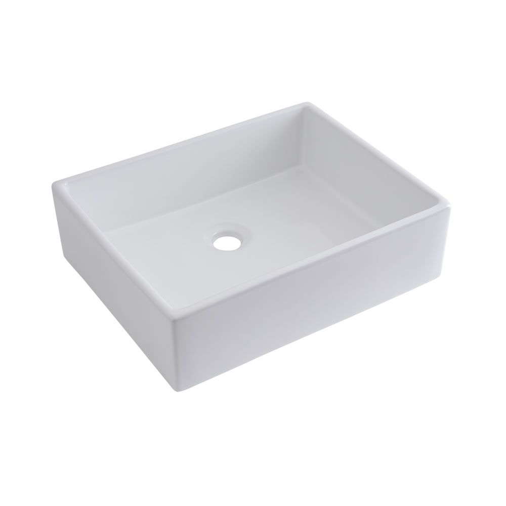 Das Aufsatzwaschbecken ist aus hochwertiger Keramik gefertigt und zudem mit einem strapazierbaren und pflegeleichten Glasur-Finish in Weiß versehen. Das elegante, minimalistische Design sorgt dabei für einen zeitgenössischen Look.
