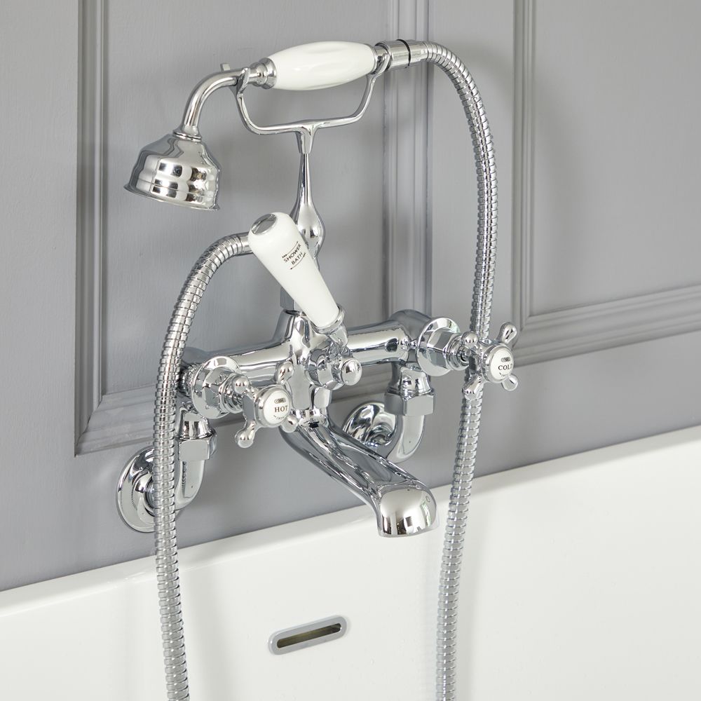 Badewannenarmatur, Wandmontage - inkl. Handbrause - Chrom/Weiß - Elizabeth