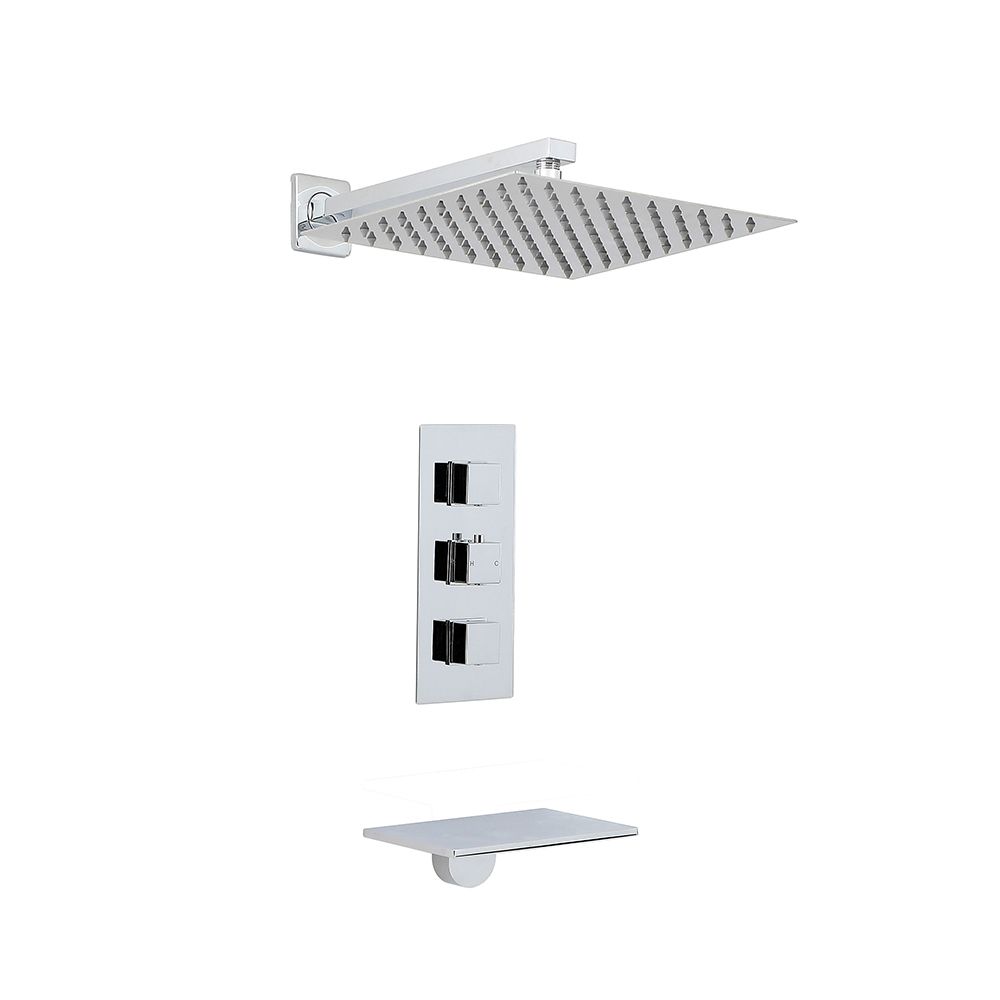 Dusch- und Badesystem mit Thermostat - mit 300mm x 300mm Duschkopf und Wasserfall-Wanneneinlauf - Chrom - Kubix