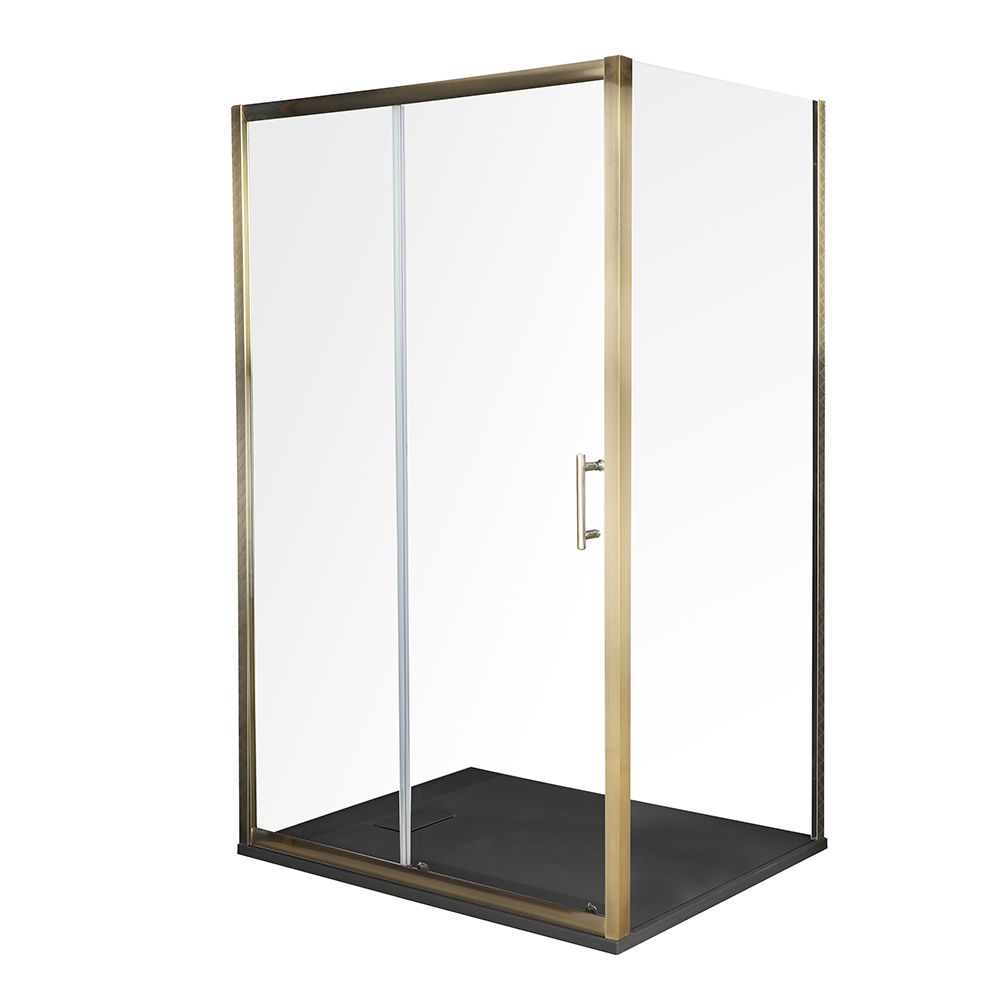 Duschkabine mit Schiebetür, antikes Messing, für Eckeinbau - inkl. Duschwanne mit Schiefer-Effekt (Finish wählbar) – wählbare Größe – Alama