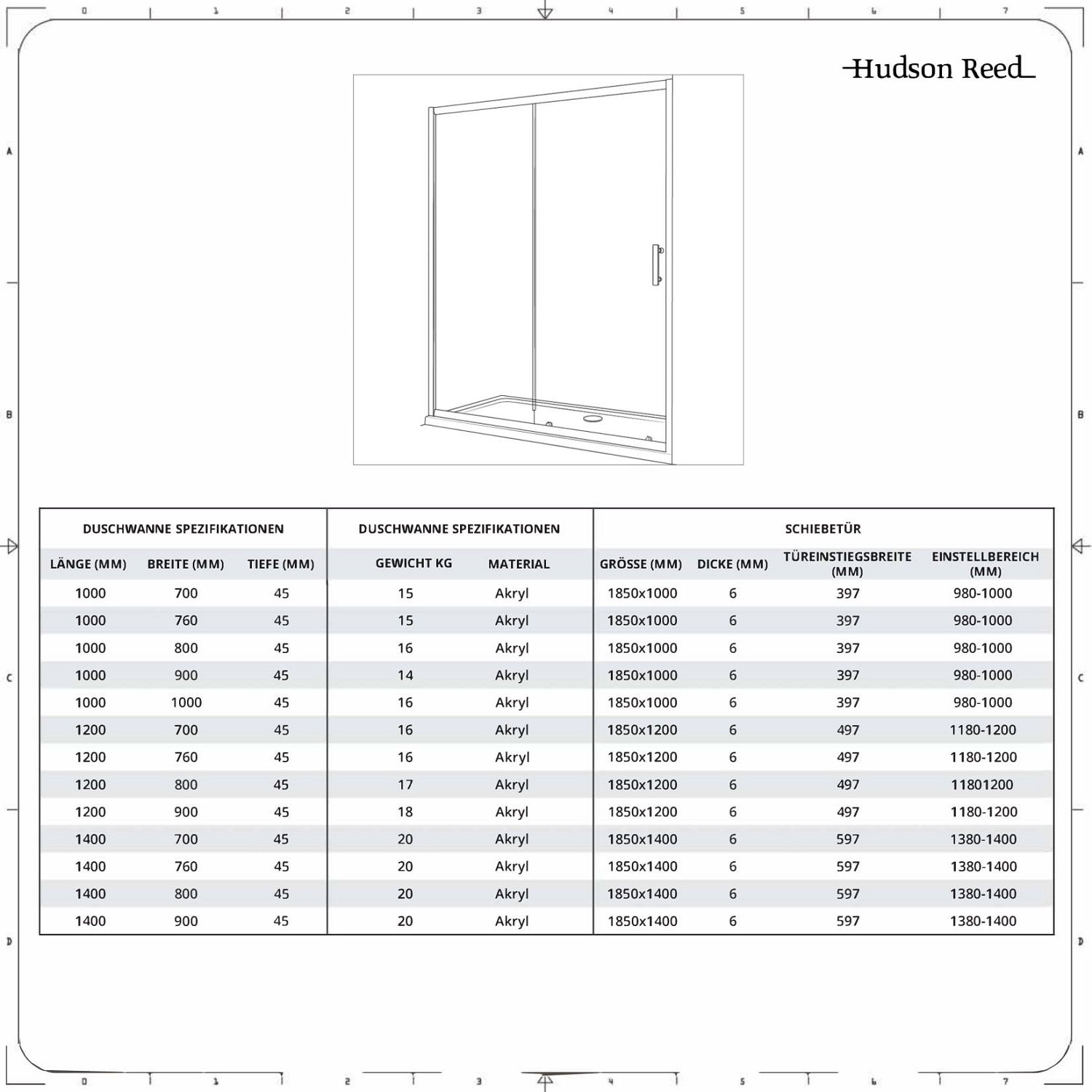 Die Tür und die Duschwanne können in verschiedenen Größen erworben werden, damit das Set perfekt in Ihre Einrichtung passt – wählen Sie die gewünschten Optionen einfach oben aus.