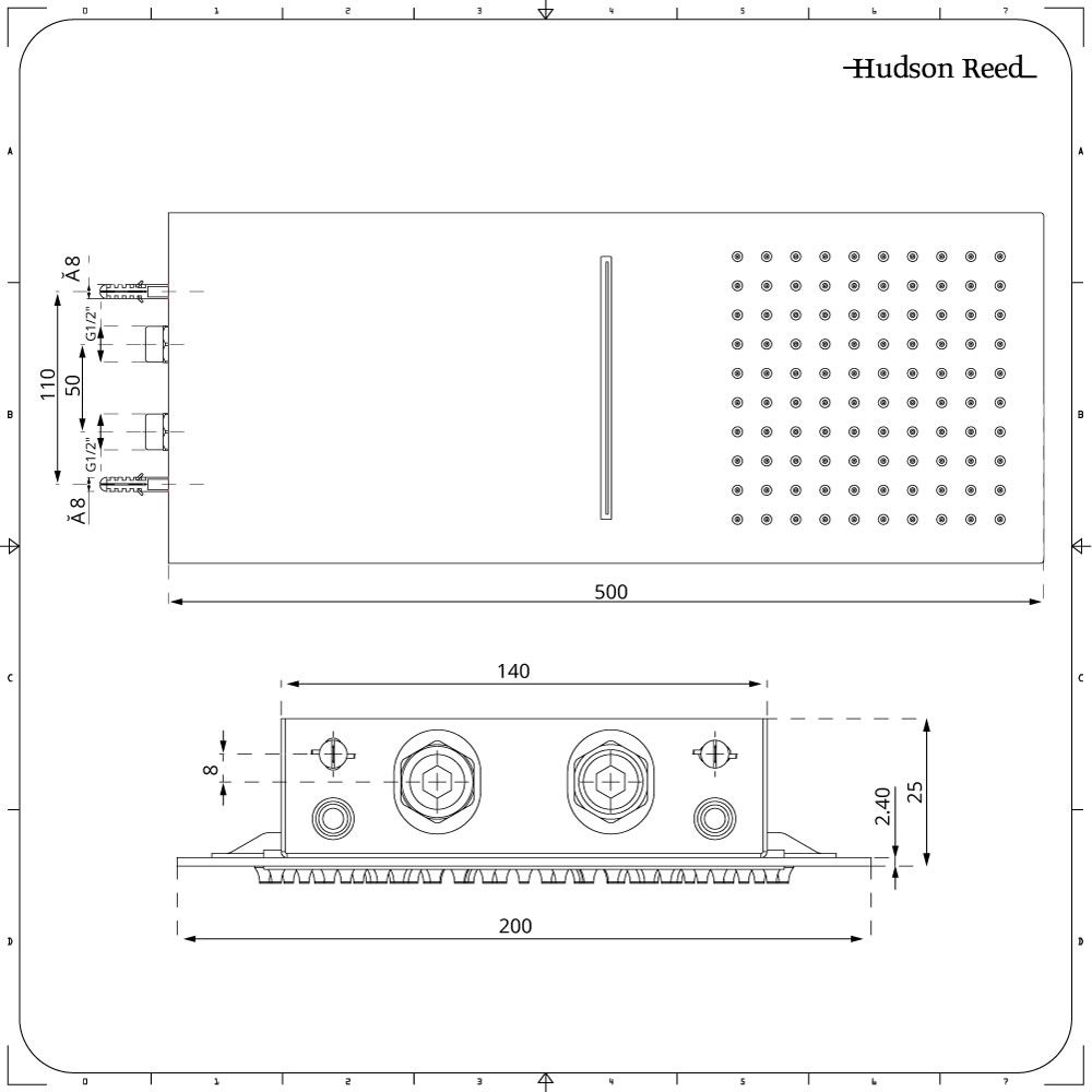 Duschkopf Edelstahl Wandmontage mit 2 Funktionen 200mm x 500mm - Kubix