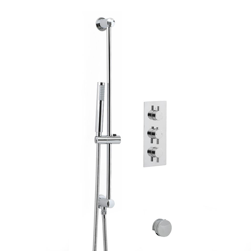 Bringen Sie zeitgemäßen Stil in Ihr Badezimmer mit dem Como 2-Weg Badewannen-Duschsystem, komplett mit Brausestangenset, Überlaufwannenfüller und Dusch-Thermostat.