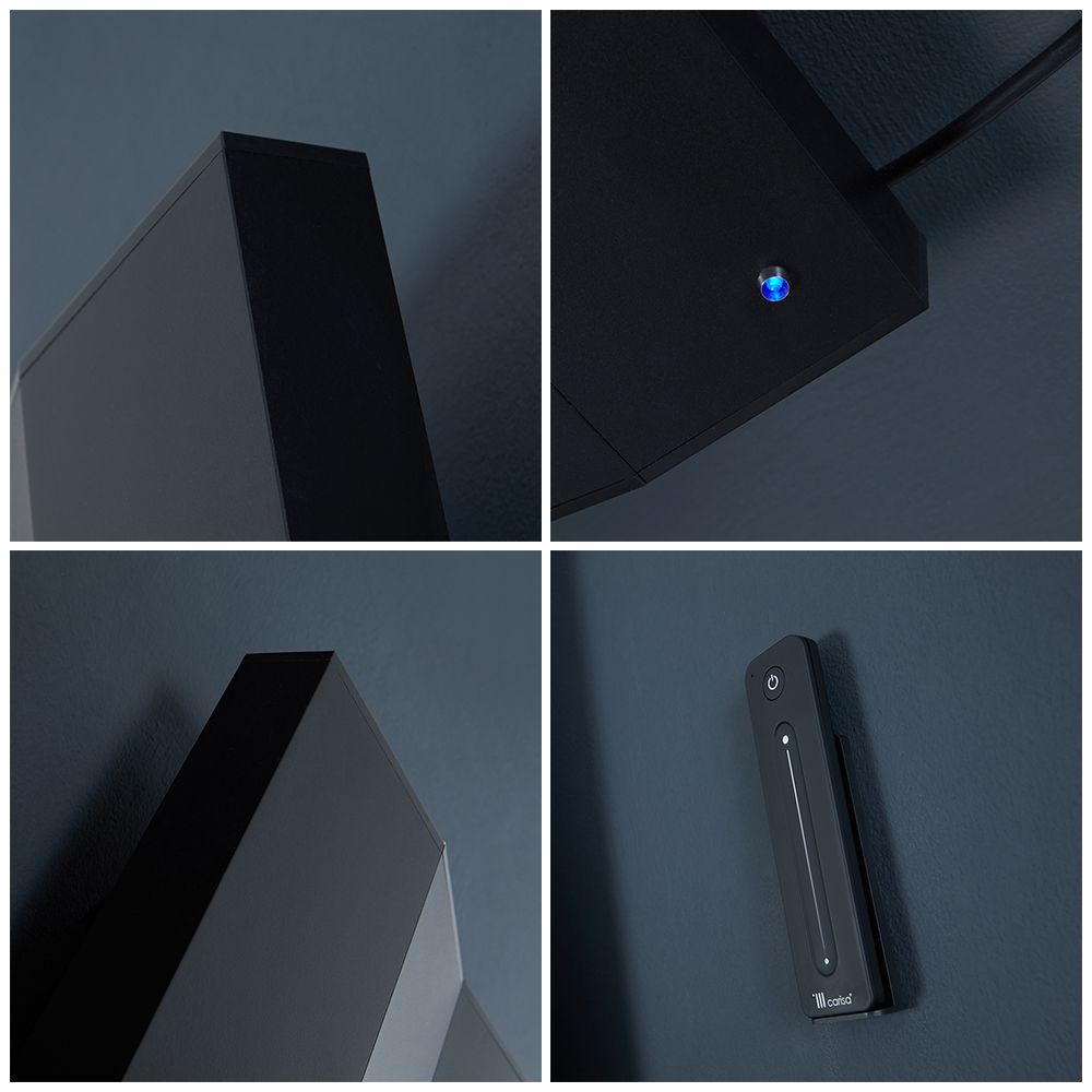 Mit der schwarzen Oberfläche sorgt er für einen einzigartigen und modernen Look und wird mit Sicherheit ein ganz besonderes Statement setzen. Im Lieferumfang ist eine praktische touch slide Fernbedienung enthalten, so können Sie den Heizkörper bequem von überall im Raum steuern und haben mehr Kontrolle über die Raumtemperatur.