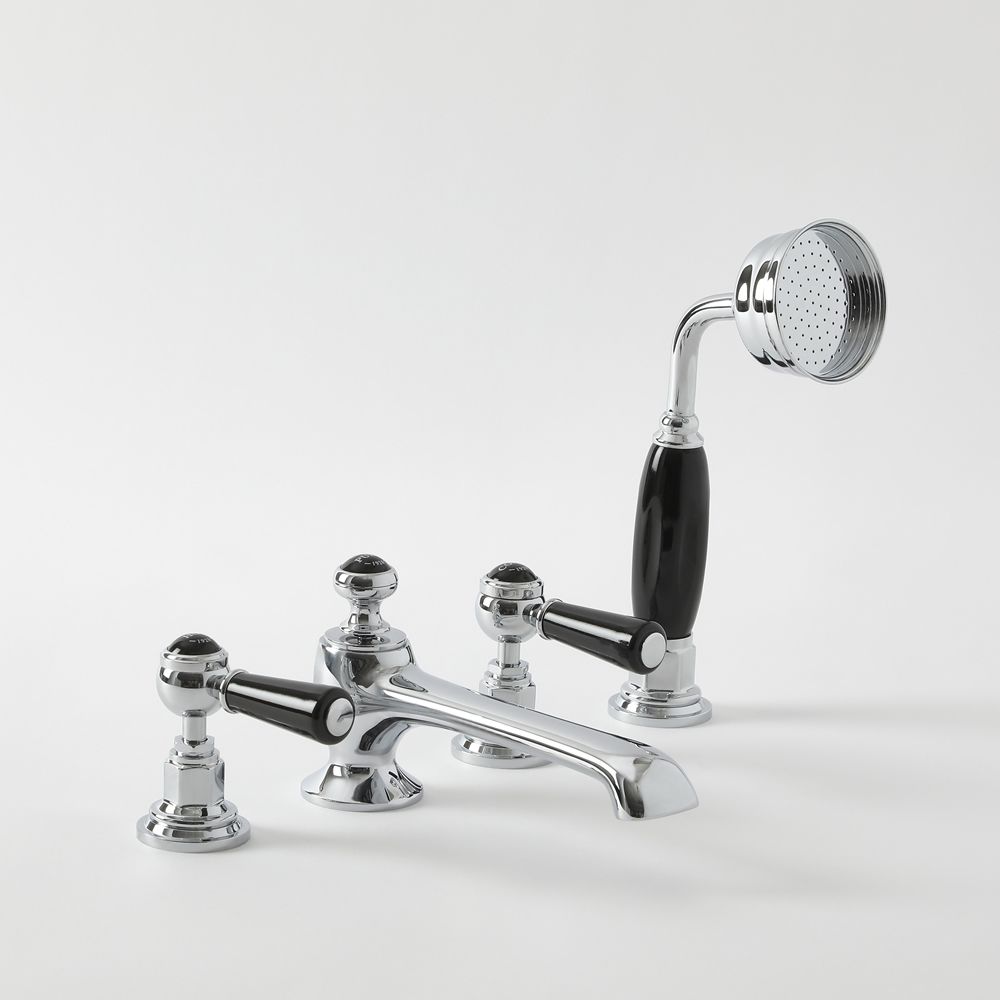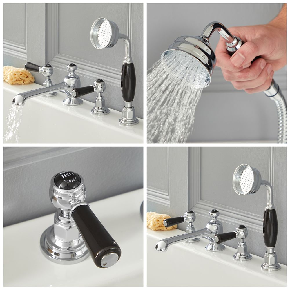 Elizabeth - Traditionelle 4-Loch Hebelgriff-Wannenarmatur mit ausziehbarer Handbrause - Chrom und Schwarz