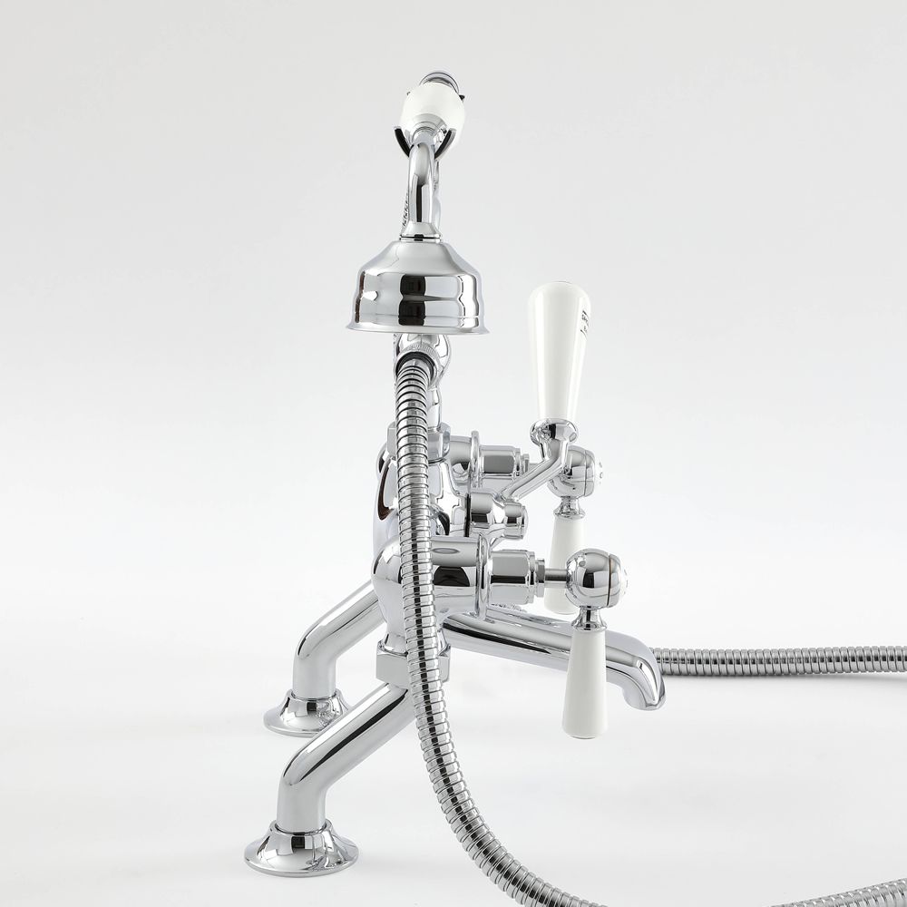 Die Elizabeth Badewannenarmatur mit Hebelgriffen samt Dusch-Set kombiniert mühelos klassisches Design mit hervorragender Qualität.