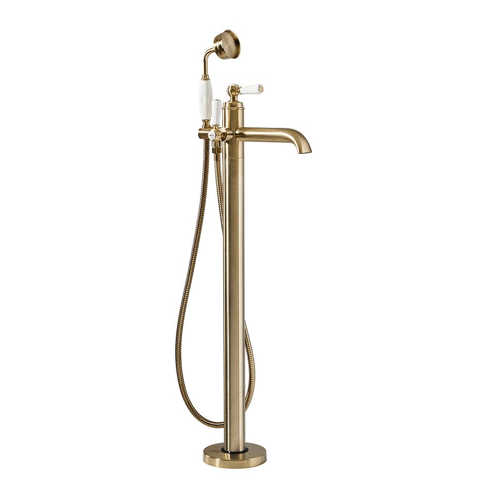 Freistehende Badewannenarmatur mit Einhebelmischer - inkl. Handbrause - satiniertes Gold – Elizabeth