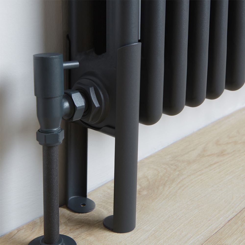 Geben Sie Ihrem Heizkörper festen Stand mit diesen edlen Bodenfüßen in Anthrazit.