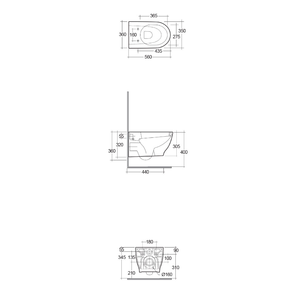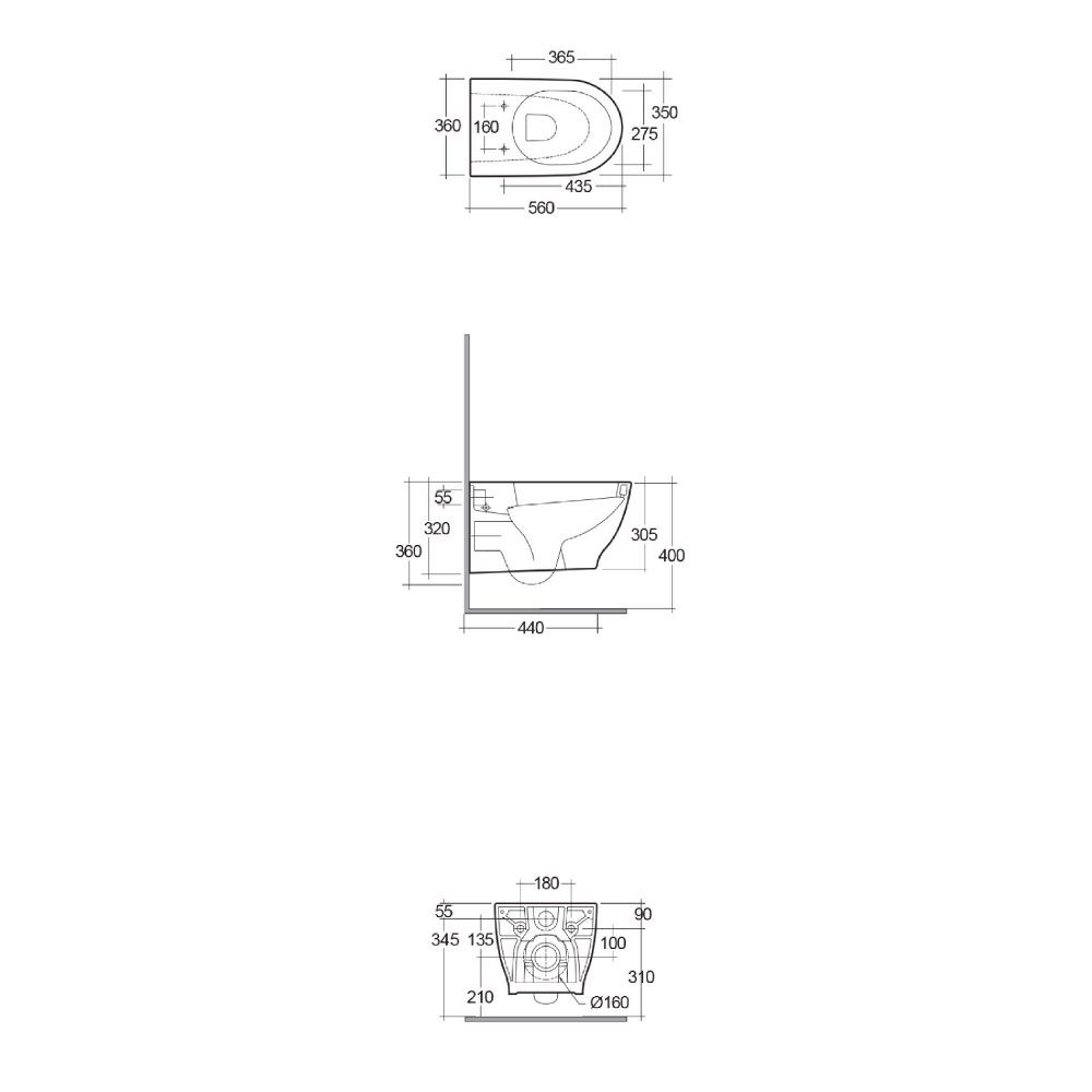Hänge-WC inkl. Sitz mit Absenkautomatik, 360mm x 360mm, Glanz-Weiß – RAK Moon x Hudson Reed