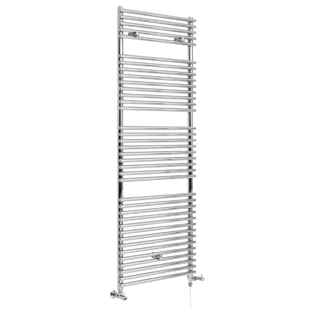 Genießen Sie ultimative Flexibilität mit dem Arno Handtuchheizkörper für den Mischbetrieb in Chrom und kommen in den Genuss warmer Handtücher zu jeder Jahreszeit – dieses Mischbetrieb-Set enthält ein paar Winkelventile für den Anschluss an die Zentralheizung sowie ein T-Stück und ein Heizelement für den Betrieb mit Strom.