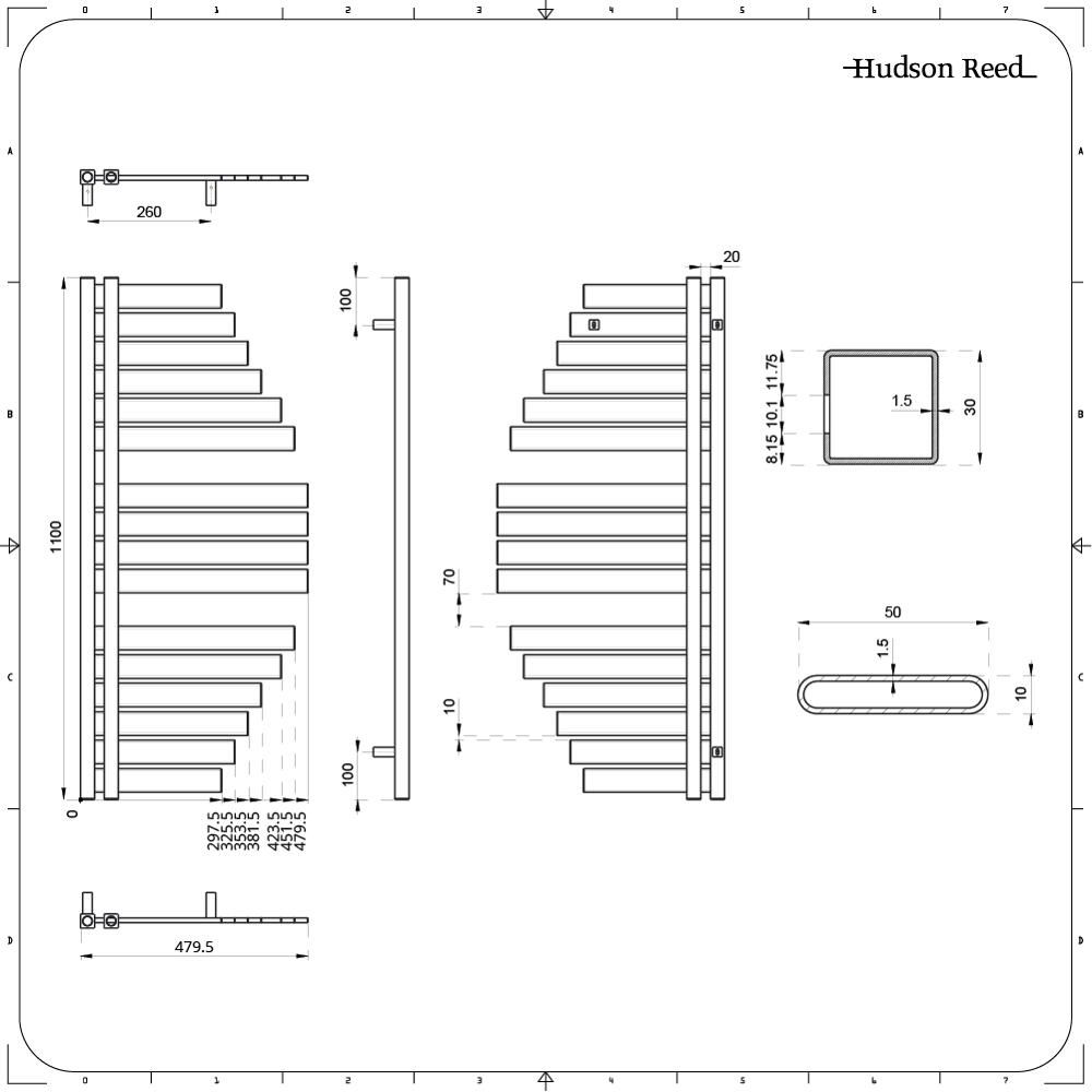 Handtuchheizkörper Mittelanschluss versetzt Anthrazit 507W 1100mm x 483mm - Lazio