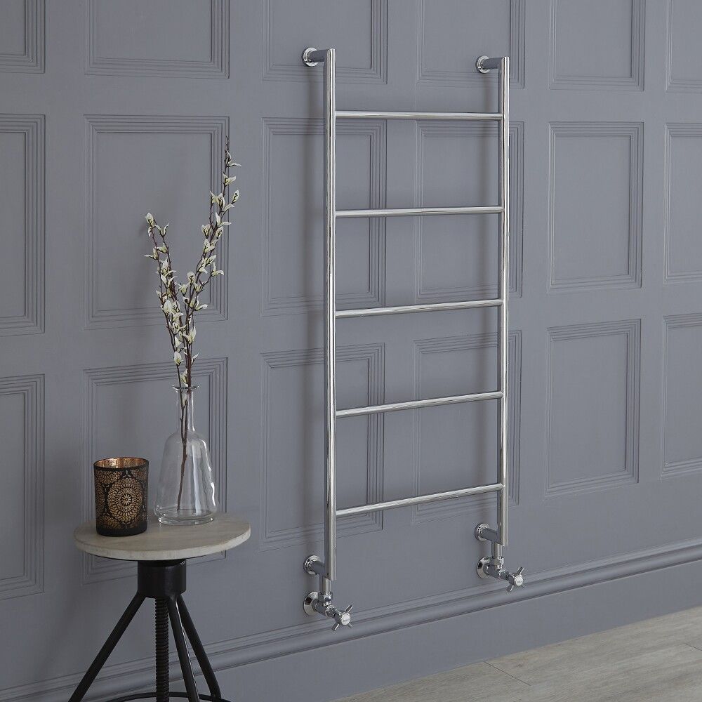Dabei schmeichelt die strapazierfähige Chrombeschichtung jedem Einrichtungsstil. Bewahren Sie Ihre Handtücher mit diesem Badheizkörper jederzeit stilvoll und ordentlich auf. Die Herstellung aus hochwertigem Stahl garantiert außerdem lange Haltbarkeit.
