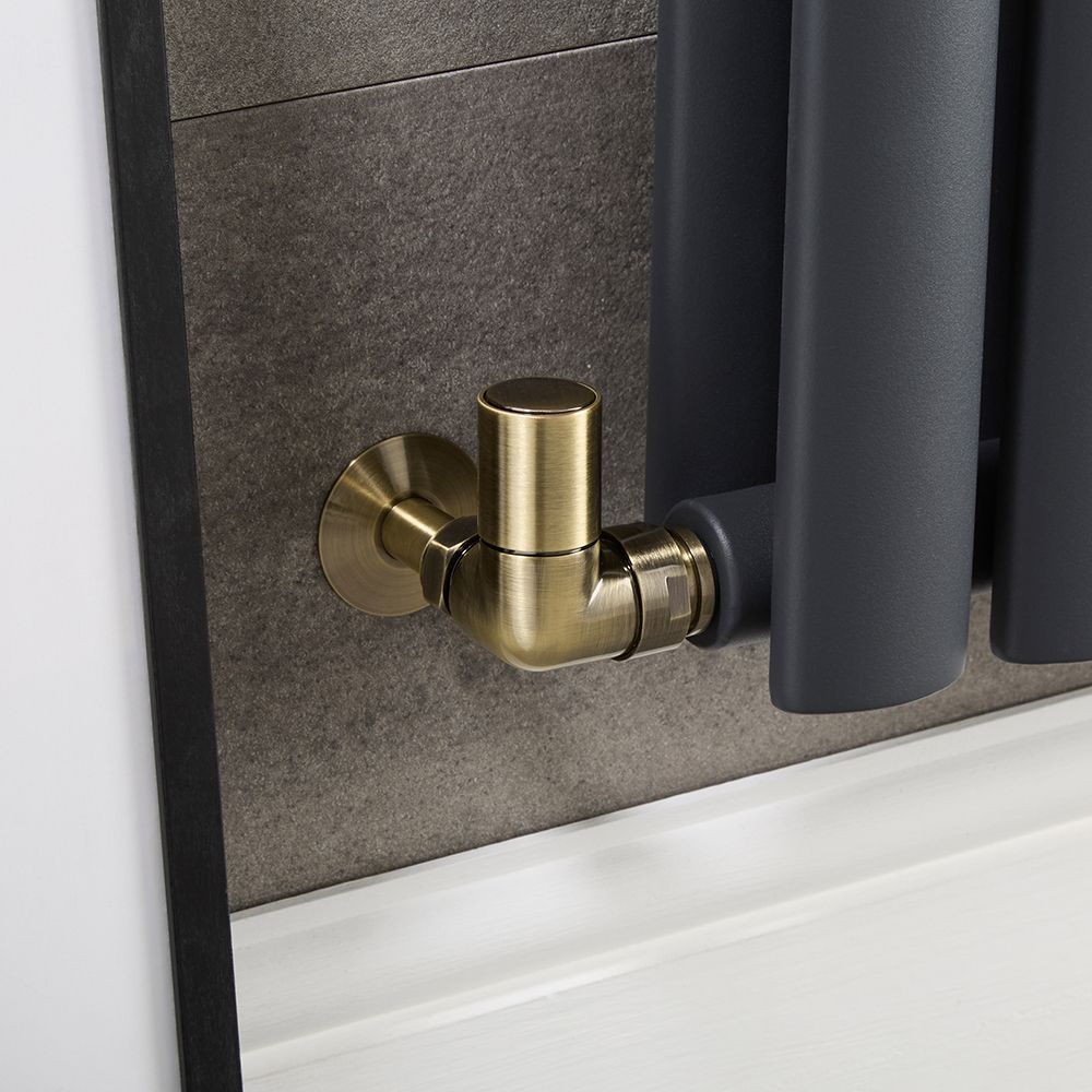 Hergestellt aus Messing überzeugen das Eckventilset und die Rohrverbindungen mit einem zeitlosen Design und einem Finish in gebürstetem Gold. Die Ventile können mit all unseren Heizkörpern und beheizten Handtuchhaltern kombiniert werden.