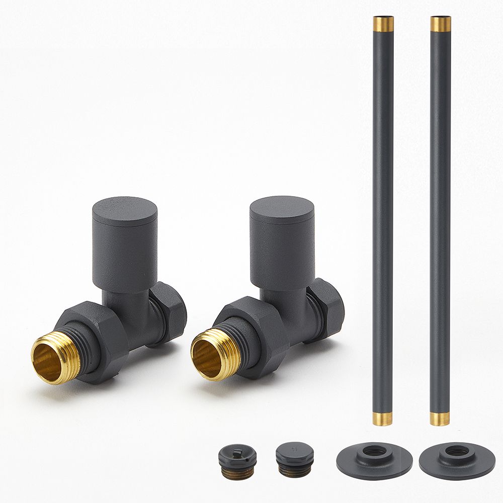 Modernes Heizkörper-Ventilset, Durchgang inkl. Rohrstücke für 15mm Kupferrohre – Anthrazit