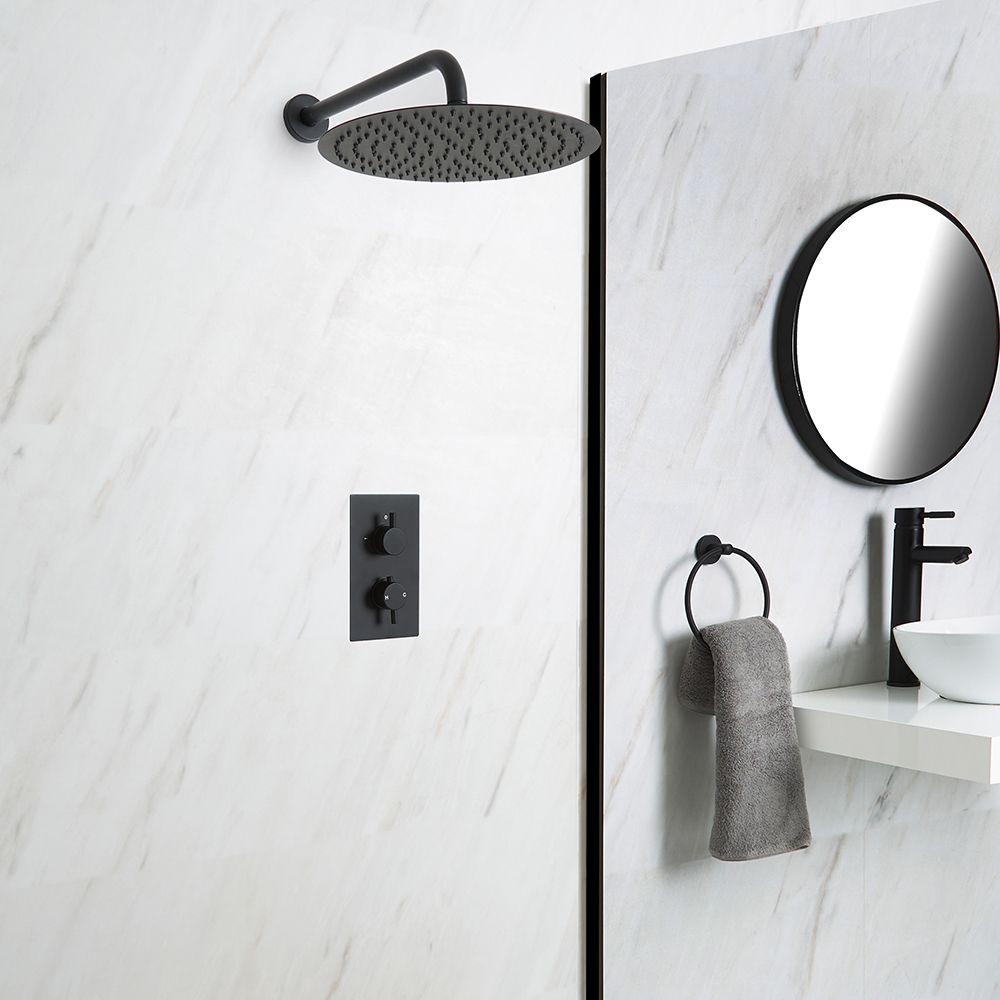 Duschen Sie stilvoll und kreieren einen trendigen Designer-Look mit dem schwarzen Thermostat-Duschventil Nox, welches mit einem 300mm runden Duschkopf und Wandarm geliefert wird.