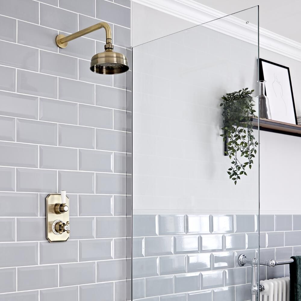 Retro 155mm Duschkopf Rund mit Wandarm, antikes Gold - Elizabeth