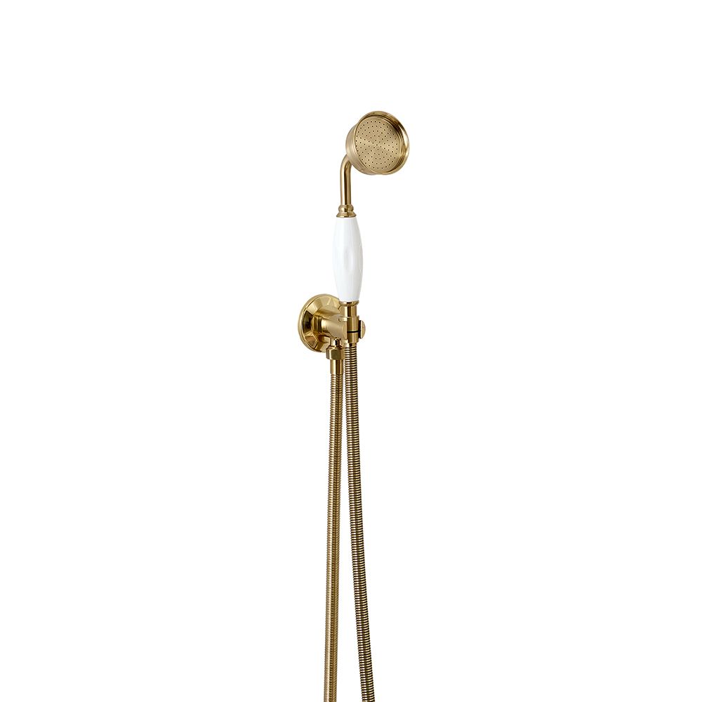 Retro Handbrauseset mit Brauseschlauch inkl. Halterung und Auslassbogen – satiniertes Gold – Elizabeth