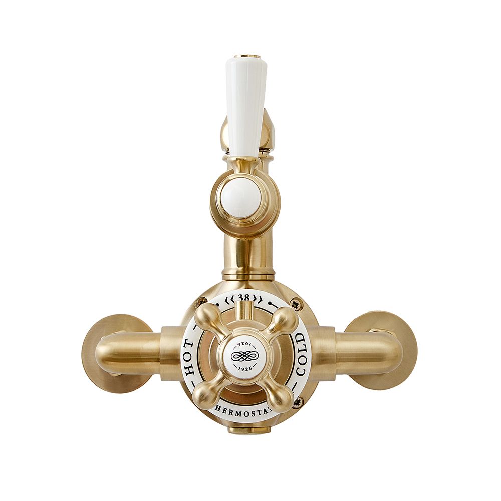 Hergestellt aus massivem Messing, um Ihnen langlebige Haltbarkeit garantieren zu können, überzeugt der Duschthermostat mit einem Finish in satiniertem Gold, das für einen zeitlosen Vintage-Look sorgt.