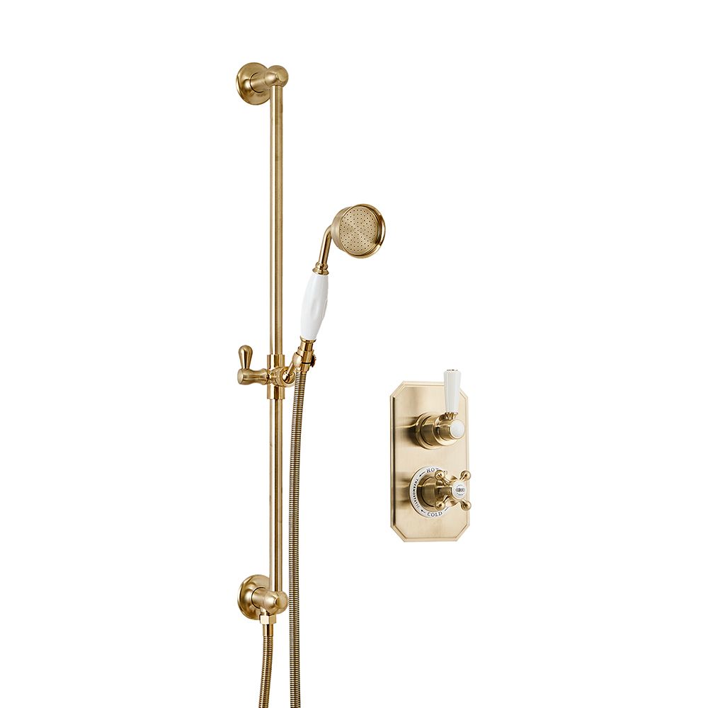Retro Unterputz-Duschsystem mit Thermostat inkl. Brausestangenset - satiniertes Gold – Elizabeth