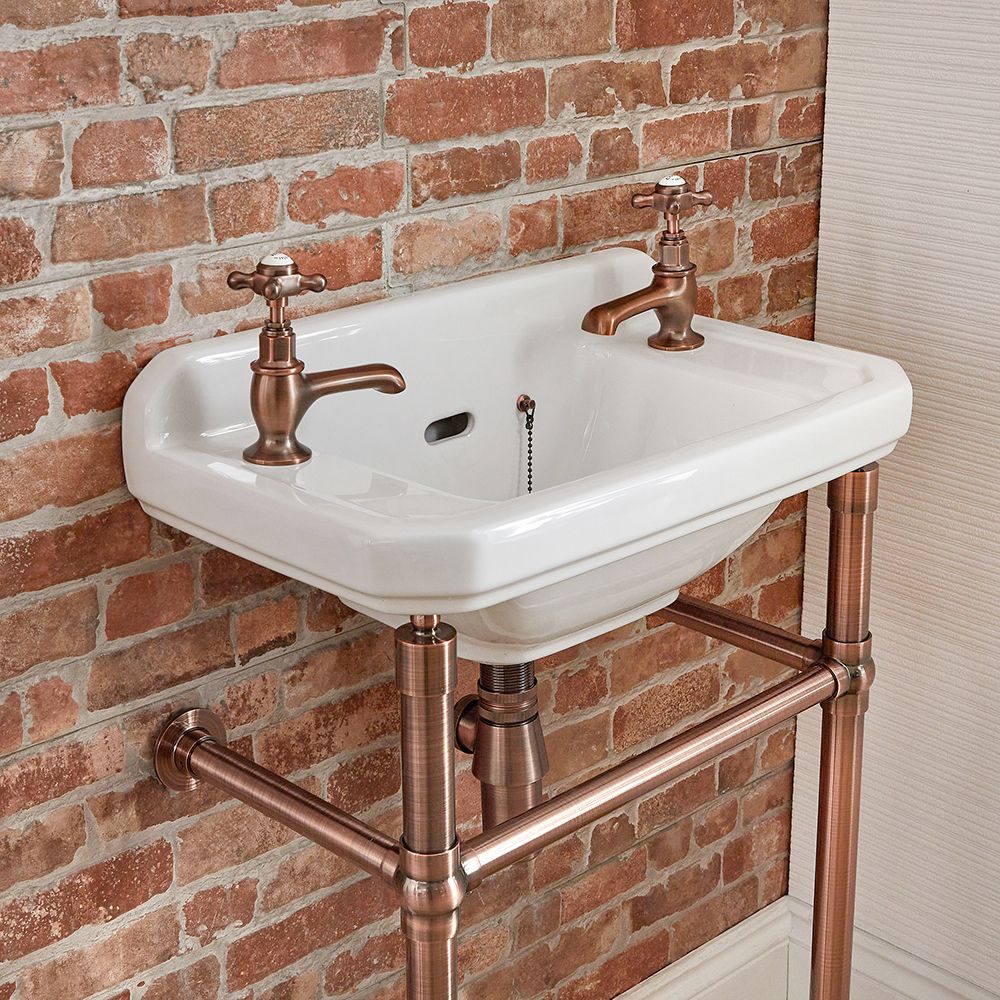 Retro-Waschbecken mit Gestell in Kupfer 515mm x 300mm, 2 Hahnlöcher – Richmond