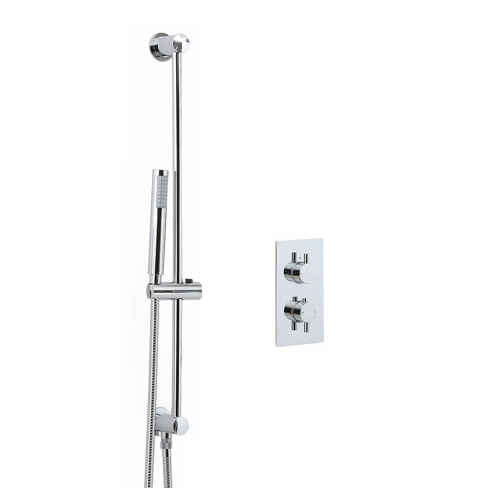 Verleihen Sie Ihrem Badezimmer ein Upgrade und eine stilvolle Dusche mit dem Como 1-Weg- Duschsystem, komplett mit Dusch-Thermostat und Brausestangenset.