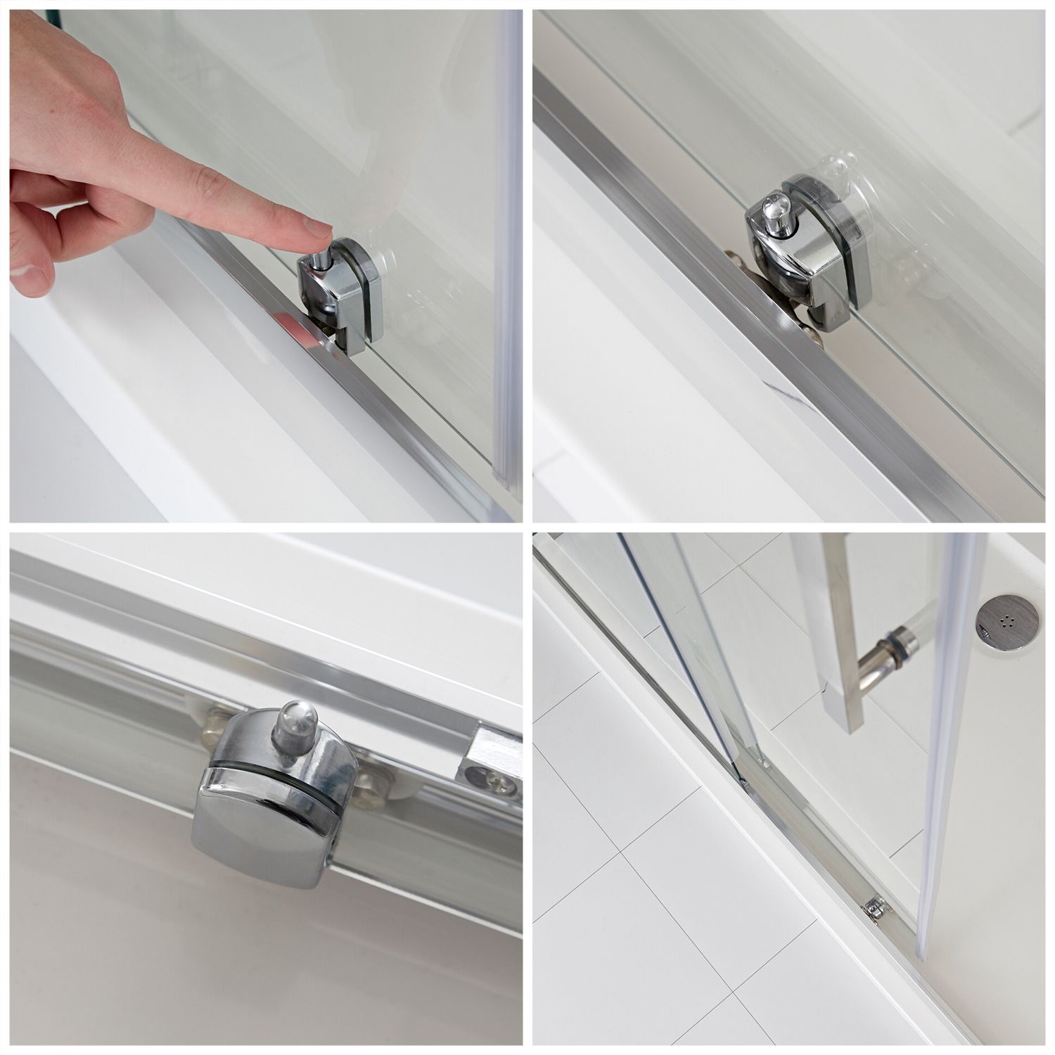 Schaffen Sie mit der Portland Schiebetür einen schicken Duschbereich mit zeitgenössischem Flair. Sie eignet sich für den Einbau in eine Nische oder mit der Seitenwand auch zum Eckeinbau. Dabei bietet Ihnen das Sicherheitsglas extra Stabilität, während die Magnetdichtung garantiert, dass die Tür geschlossen und wasserdicht bleibt.