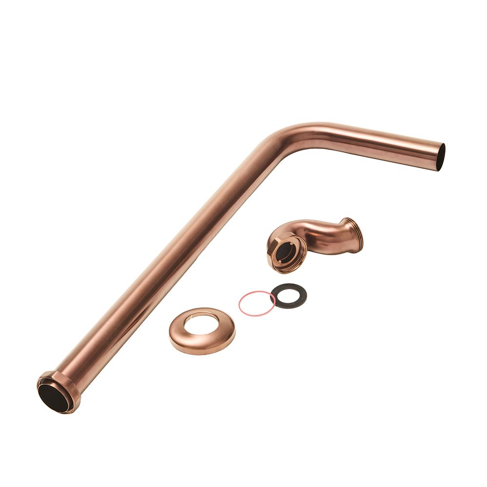 Dieser Siphon und das Ablaufrohr aus der Elizabeth-Kollektion mit strapazierbarem Finish in satiniertem Kupfer wurden für die Verwendung mit freistehenden Badewannen entworfen, bei denen die Rohrleitungen sichtbar sind.