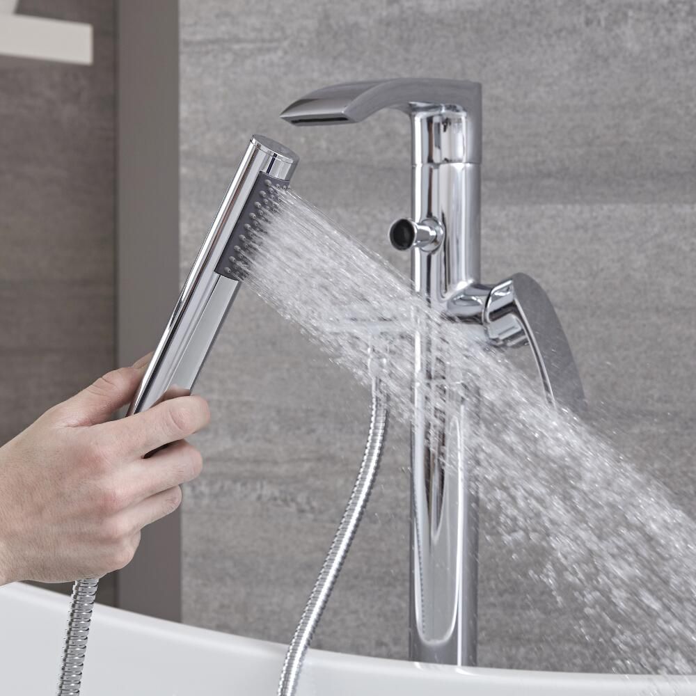 Standarmatur für freistehende Badewannen - mit Handbrause und Wasserfallauslauf - Chrom - Razor