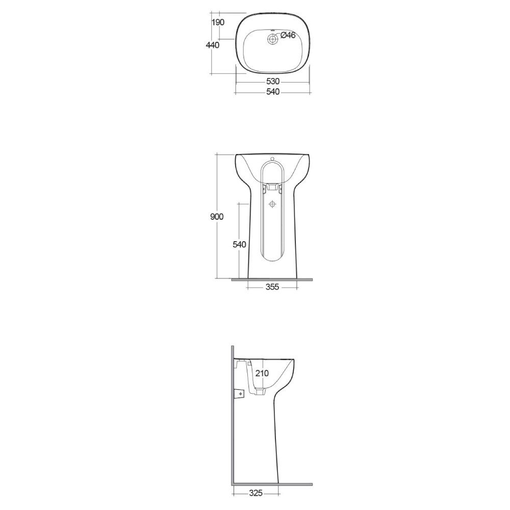 Standwaschbecken, rechteckig abgerundet, 540mm x 440mm, ohne Hahnloch – Glanz-Weiß – RAK Illusion x Hudson Reed