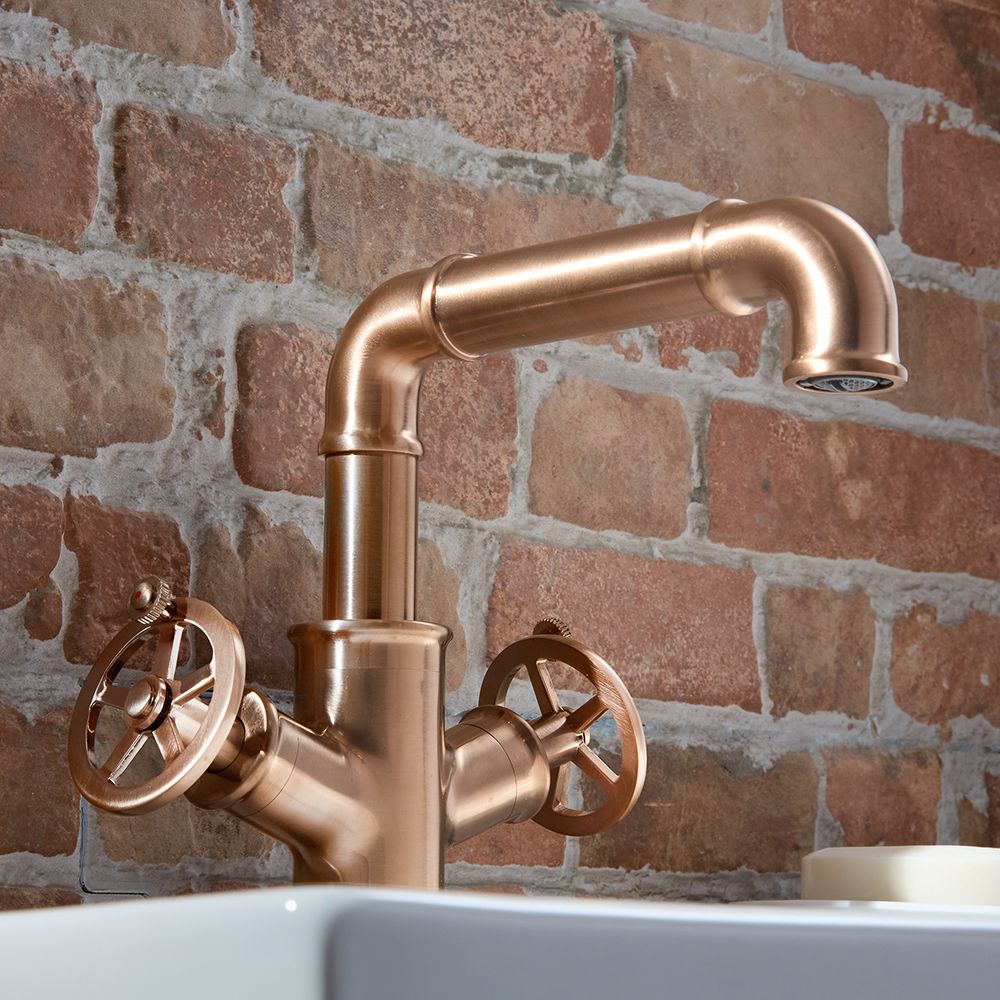 Steampunk 1-Loch Waschtischarmatur mit runden Griffen - satiniertes Kupfer - Zandra