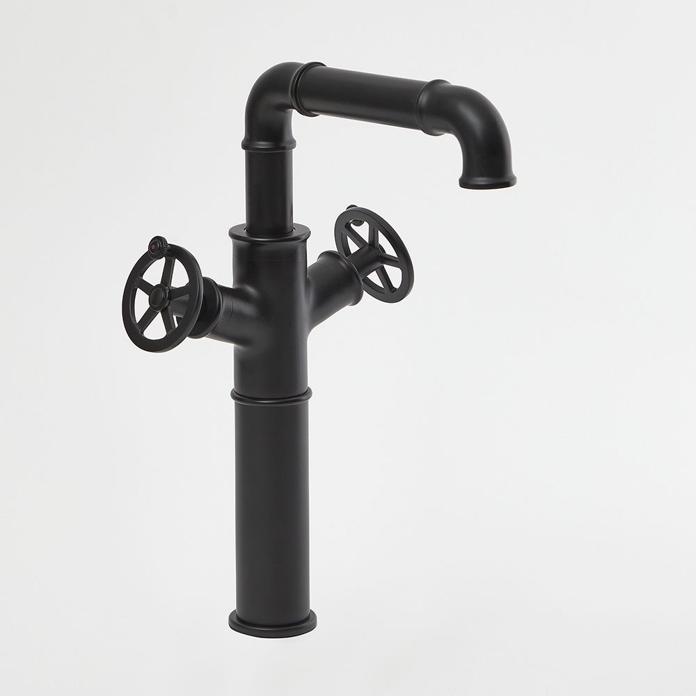 Steampunk Hohe 1-Loch Waschtischarmatur mit runden Griffen - Matt-Schwarz - Zandra