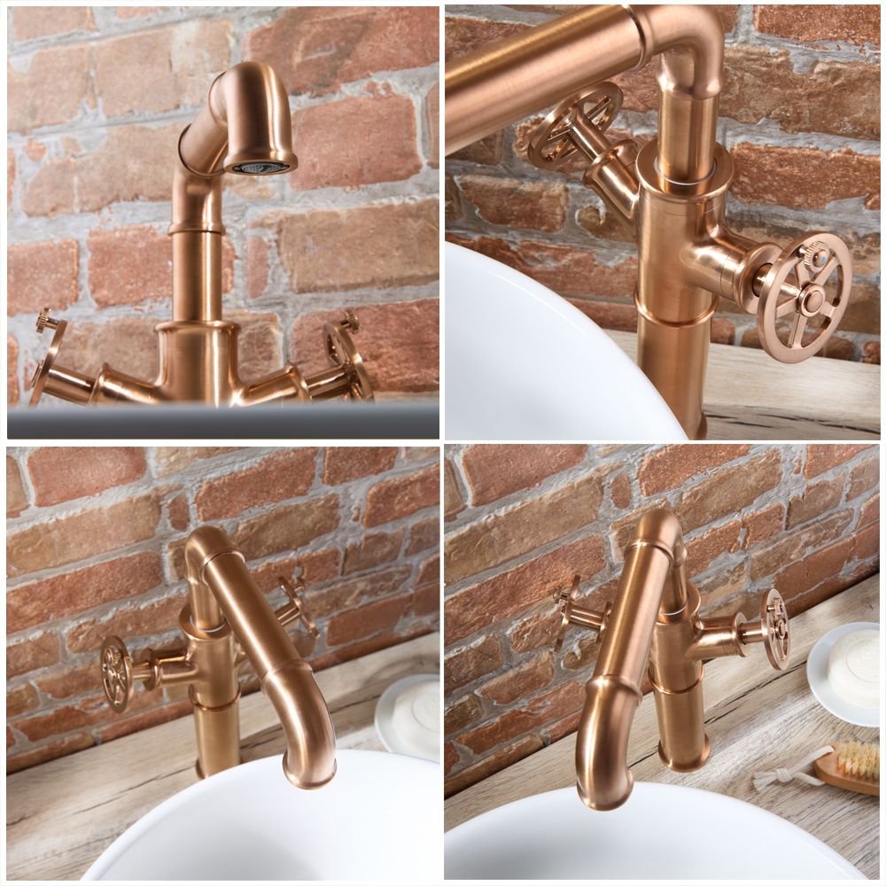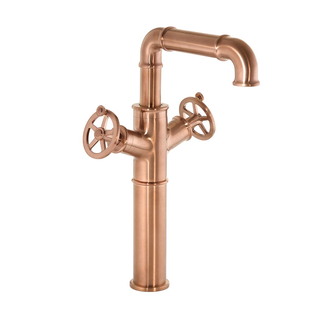 Steampunk Hohe 1-Loch Waschtischarmatur mit runden Griffen - satiniertes Kupfer - Zandra