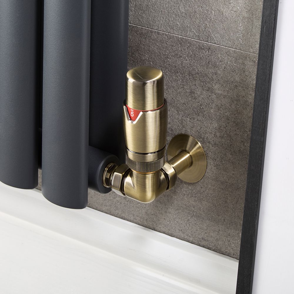 Hergestellt aus Messing überzeugen das Eckventilset und die Rohrstücke mit einem zeitlosen Design und einem robusten Finish in gebürstetem Messing. Die Ventile können mit all unseren Heizkörpern und beheizten Handtuchhaltern kombiniert werden.
