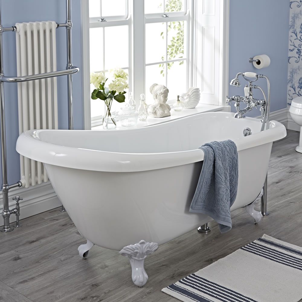 - Freistehende Badewanne mit weißen Löwenfüßen