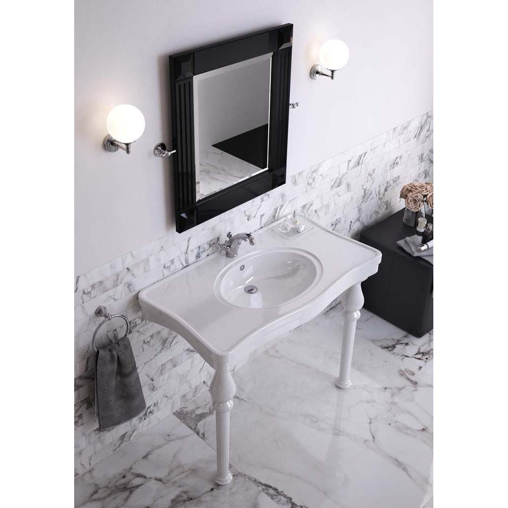 Bringen Sie Klasse und Eleganz mit dem traditionellen Waschtisch aus der RAK Washington – Kollektion in Ihr Badezimmer. Dieser wurde nach den höchsten Standards aus hochwertigem Kristallporzellan hergestellt und verfügt über ein strapazierfähiges, weißes Hochglanz-Finish. Der Waschtisch kommt mit 2 filigran gearbeiteten Standbeinen, welche ein echter Hingucker sind