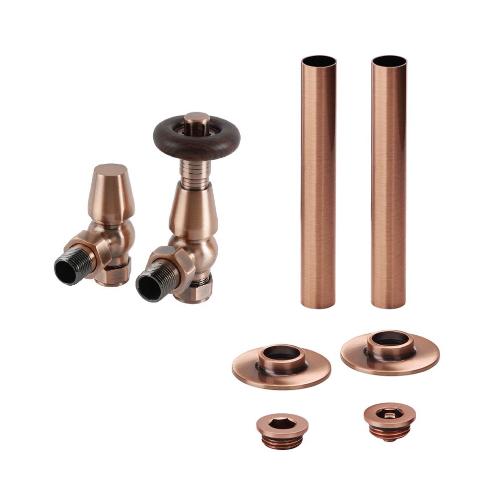 Traditionelles Winkelventilset & Rohrhülsen (thermostatisch) – Farbe wählbar