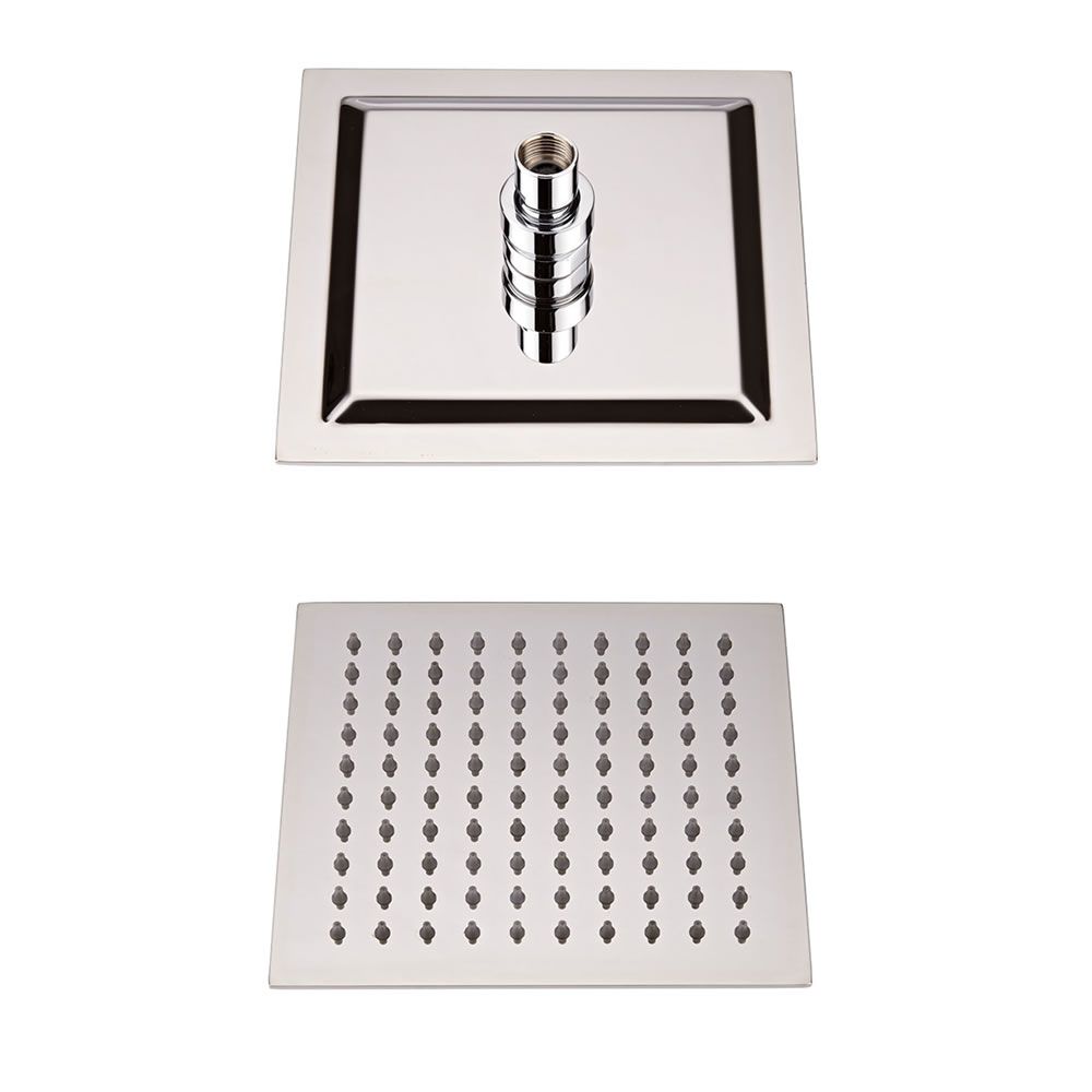 - Eckiger Duschkopf, Chrom 200mm x 200mm, inkl. kurzem Arm zur Deckenmontage - Kubix