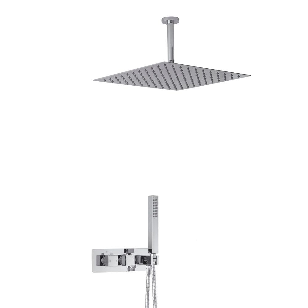 Unterputz-Thermostat für 2 Verbraucher inkl. Handbrause und 400mm Duschkopf zur Deckenmontage - Chrom - Kubix
