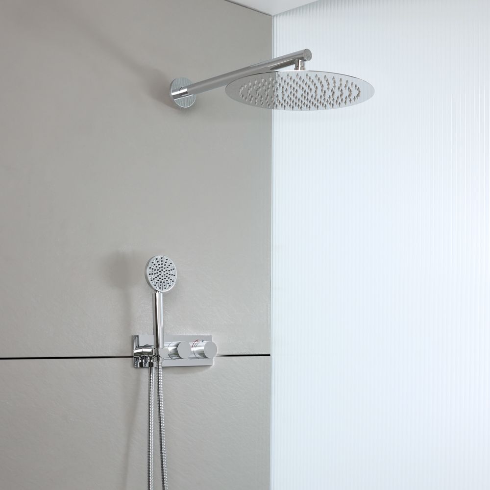 Verleihen Sie Ihrem Badezimmer mit dem Unterputz-Thermostat aus der Lune-Kollektion inklusive Duschkopf zur Wandmontage und einer Handbrause, einen eleganten, modernen Look.
