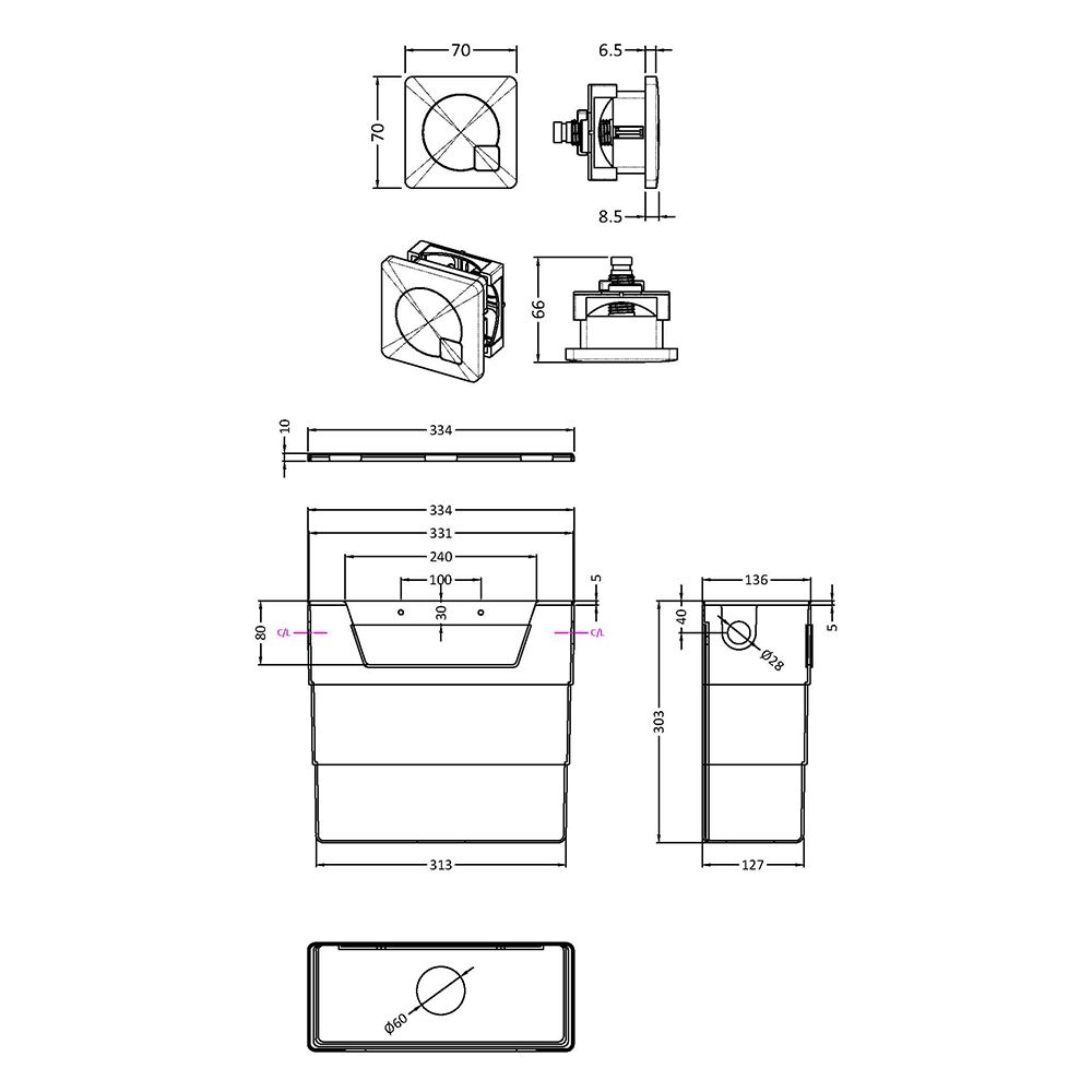 - Dimensionen: B 334mm x T 140mm x H 303mm