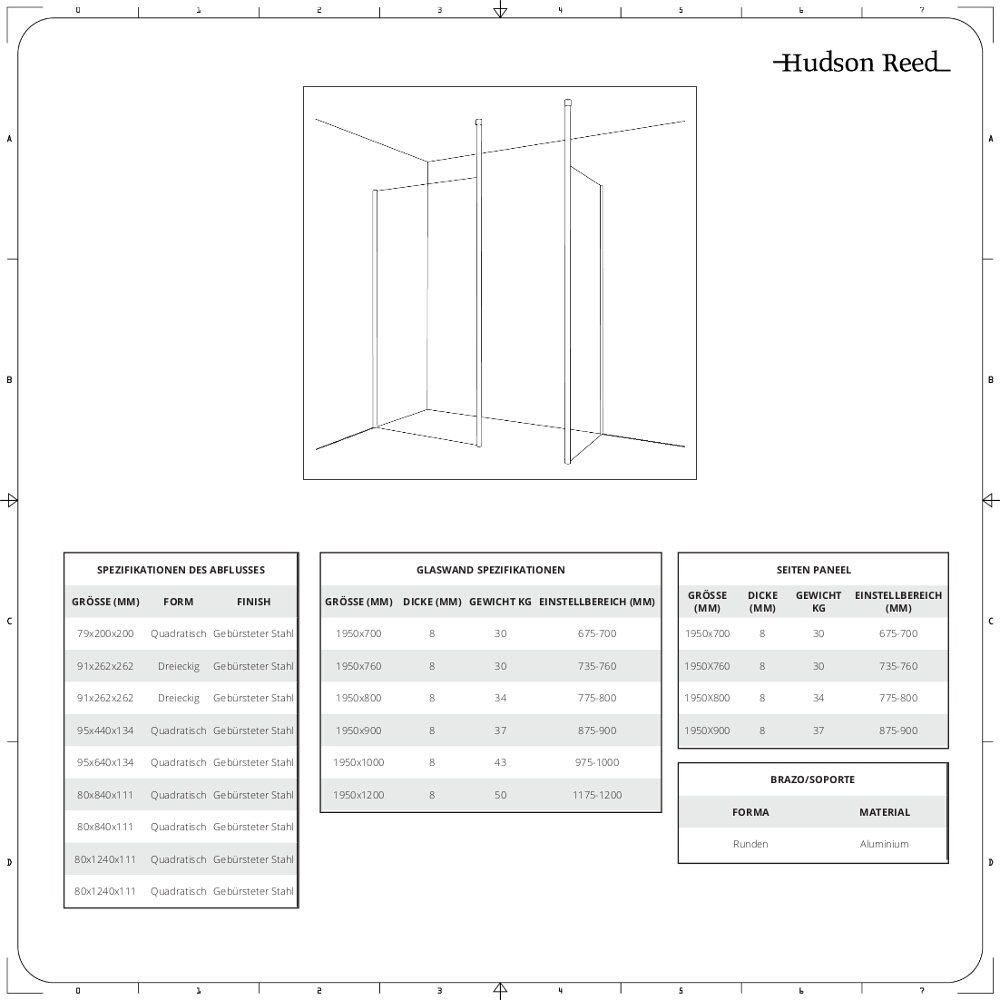 - Höhe der Duschwände: 1950mm