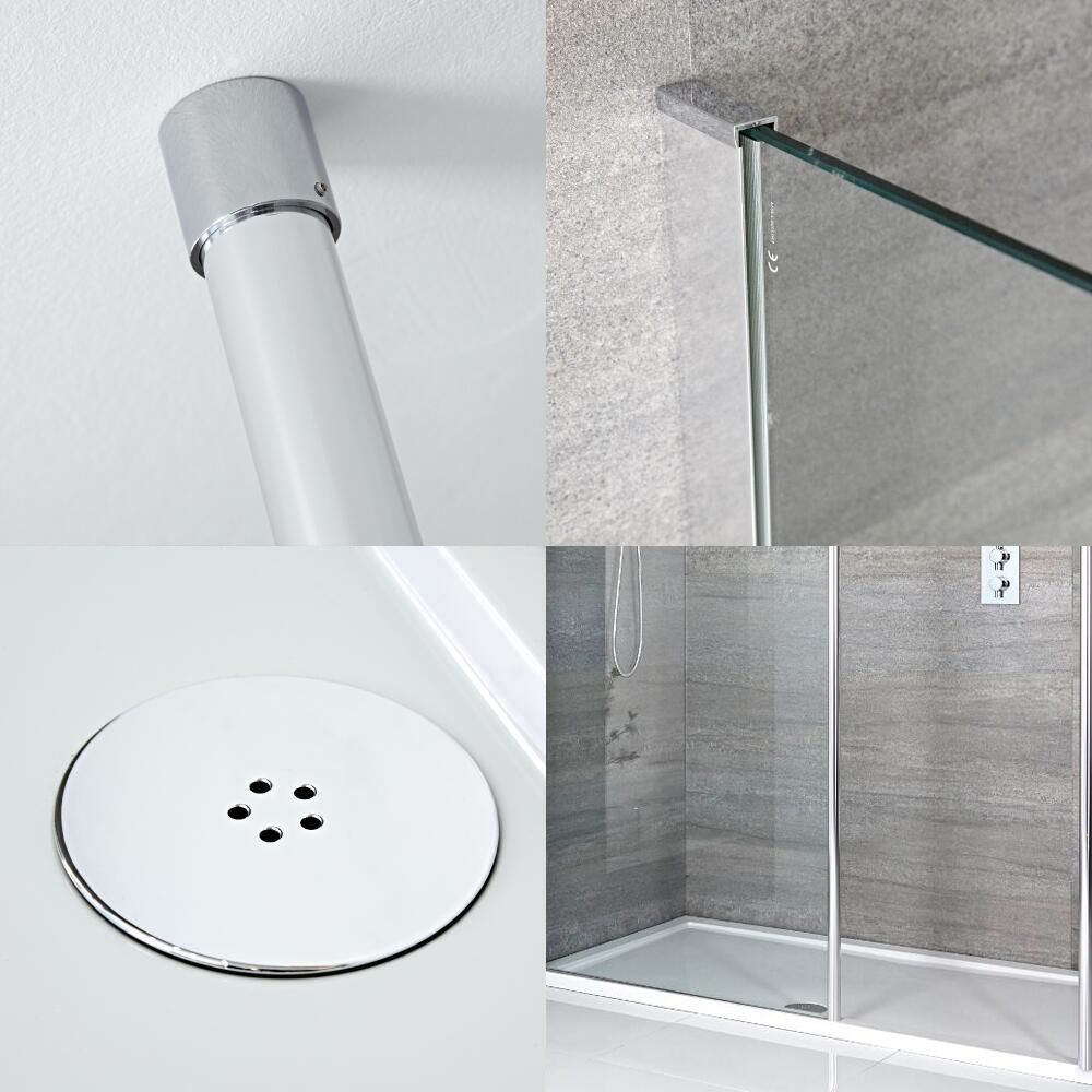 Mit einer Höhe von 1950mm schützen die beiden Duschwände die Umgebung vor Wasserspritzern und sie bestehen zudem aus 8mm verstärktem Sicherheitsglas.