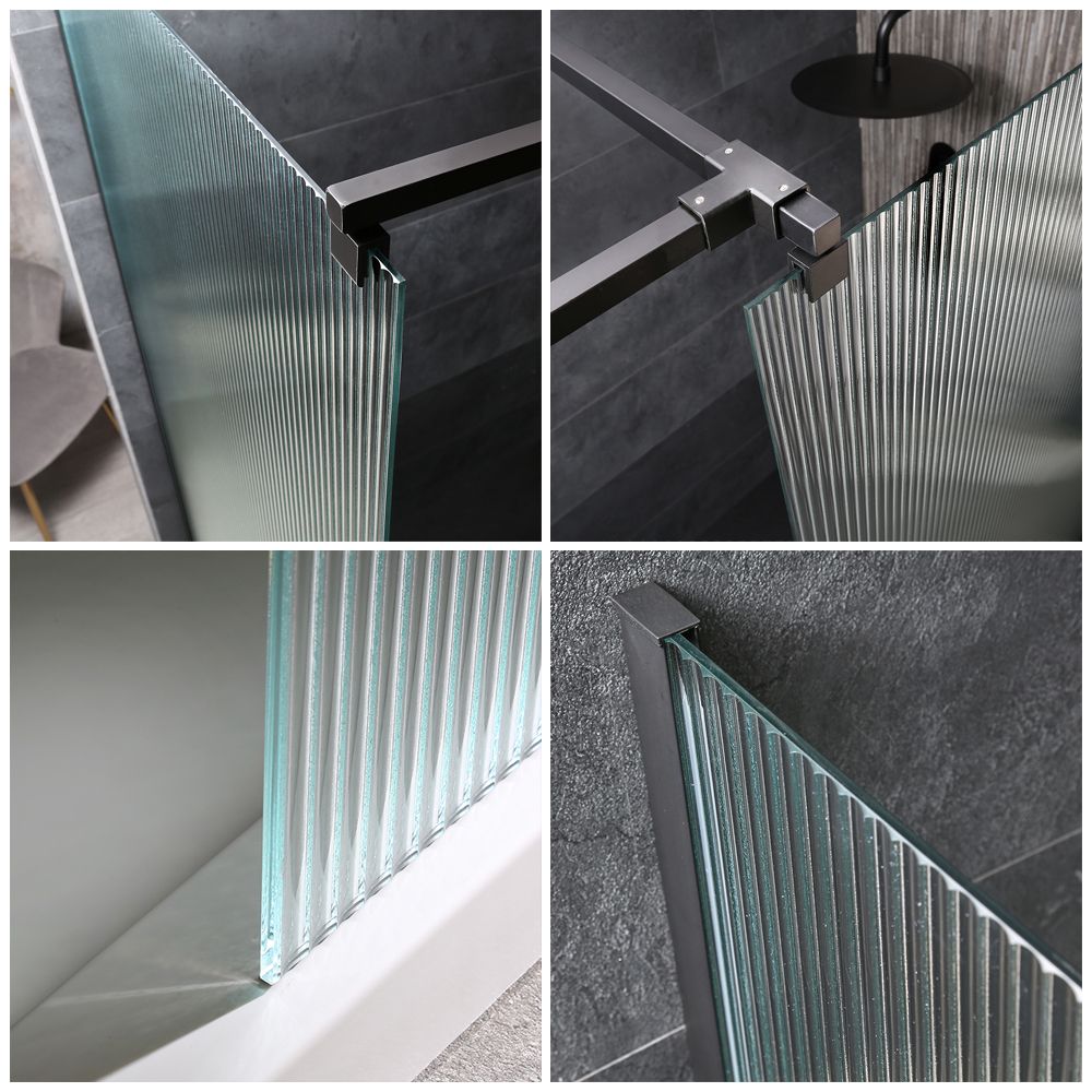 Die geriffelte Duschabtrennung wird in jeder Badeinrichtung zum garantierten Blickfang, zudem wurde sie aus 6mm verstärktem Sicherheitsglas gefertigt. Das Profil und die Stützarme in Schwarz fügen sich mühelos in jedes Farbschema ein.