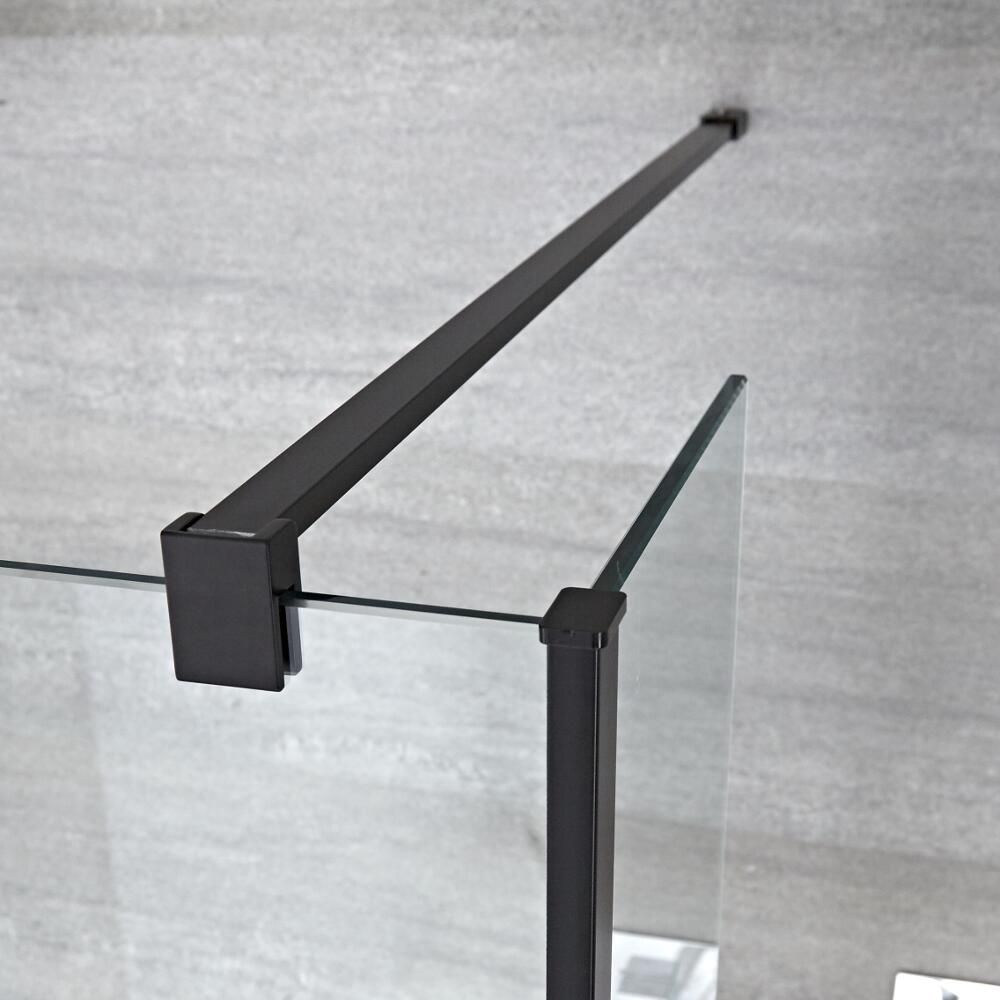 Mit dem mattschwarzen Profil und dem Stützarm wird die Nox Duschwand zum garantierten Blickfang und verlieht Ihrem Badezimmer dabei ein zeitgenössisches Flair.